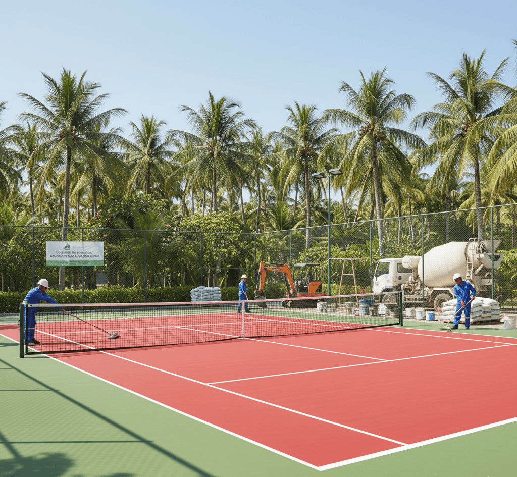 Kami tidak hanya membangun lapangan tenis, tapi menciptakan arena olahraga yang tahan lama, presisi, dan sesuai standar internasional. Dengan pengalaman, teknologi terbaik, serta tim profesional, kami pastikan hasil akhir yang memuaskan dan siap digunakan jangka panjang.