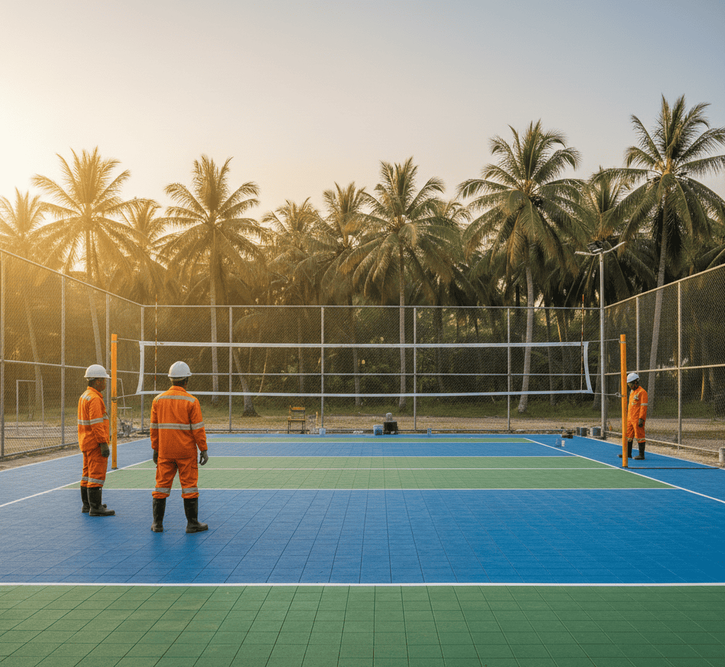 Kami menghadirkan layanan pembangunan lapangan tennis dengan standar profesional, mulai dari perencanaan, konstruksi, hingga finishing yang rapi dan tahan lama.